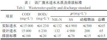 廢水進水水量500 m3/d,經廢水處理站處理后的水質能達到污水綜合排放標準(GB 8978-1996)所規定的一級水質排放標準。該工程的設計進水水質及排放標準見表1。