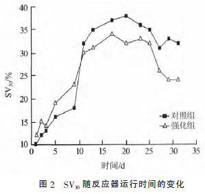 SV30隨反應(yīng)器運(yùn)行時間的變化如圖2 所示。