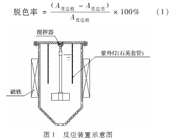 (1)鹽酸、氫氧化鈉等實(shí)驗(yàn)用試劑均為分析純,國(guó)藥集團(tuán)化學(xué)試劑有限公司。磁性光催化劑Fe3O4/TiO2按照文獻(xiàn)制備;實(shí)驗(yàn)用模擬染料廢水為色度為300,PH值為7.0±0.5的實(shí)驗(yàn)室自制亞甲基藍(lán)溶液廢水;磁場(chǎng)由不同規(guī)格的銣鐵硼永磁體產(chǎn)生。