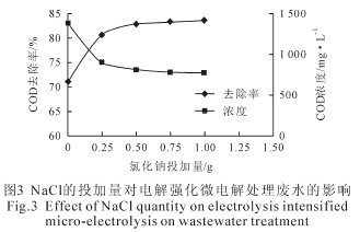 2.2.2.1 NaCl 的投加量對電解強化微電解效果的影響