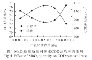以MnO2 為催化劑,考察MnO2 的投加量對鐵炭微電解處理廢水效果的影響,結果見圖4。