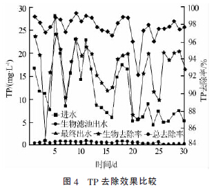 試驗生物處理段與試驗最終TP 去除效果比較如圖4所示。