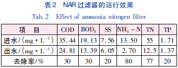 采用速分生化+ NAR 交換集成處理工藝處理農村生活污水,對COD、BOD5、SS、NH3-N、TN、TP均具有較好的去除效果,平均去除率分別為93%、91%、96%、98%、85%、88%,平均出水濃度分別為24.81、13、4.84、0.58、12、0.34 mg /L,達到了北京市地方標準《水污染物排放標準》(DB 11 /307—2005)一級B 標準。該速分生化+ NAR 交換集成處理工藝具有運行費用低、工藝簡單、操作方便、易于維護和運行、無污泥產生等優點,采用埋地式而不影響環境美觀,無臭無味,且處理效果穩定、良好,適合于農村生活污水的集中處理。