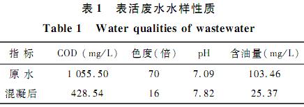 取一定量的水樣于燒杯中進(jìn)行靜態(tài)實(shí)驗(yàn),分別考察不同試劑加量對COD去除率的影響。其中COD濃度采用K2Cr2O7法測定,COD去除率計算公式為COD。分別為鉆井廢水的初始COD和反應(yīng)。時刻的COD(MG/L);PH采用PH-25精密酸度計測定;含油量采用紅外分光測油儀測定。