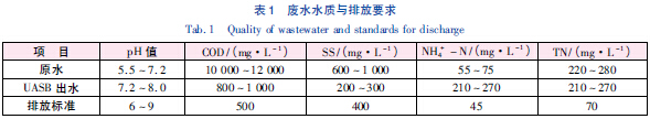 原廢水處理系統中UASB 反應器在水溫為(37±1)℃、容積負荷為4~6kgCOD/(m3·d) 條件下,對COd的去除率穩定在90% 以上,厭氧出水COD為800~1 000 mg/L,VFA(揮發性脂肪酸) 為3~5mmol/L,CaCO3堿度為4 200 mg/L 左右,沼氣產量為6 000~7 000 m3/d。原UASB 反應器對NH4+-N、有機氮幾乎沒有去除效果,UASB 出水NH4+-N高達210~270 mg/L。由于廠區用地緊張,環保可用地僅為約360 m2,新增的好氧系統需能去除廢水中殘余COd并脫氮。