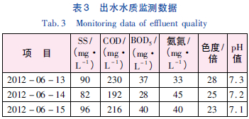 該工程于2012 年3 月投產至今,各項出水指標均達到《污水綜合排放標準》(GB 8978-1996)的二級排放標準。具體見表3。