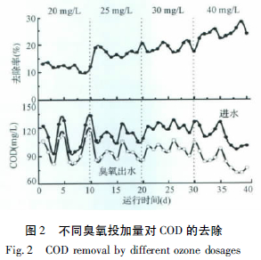 COD 采用標準方法測定; 色度采用鉑鈷比色法測定; 臭氧濃度采用碘量法的改進法測定。