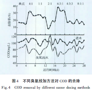 2.2 臭氧投加方法對二級生化出水的處理效果影響