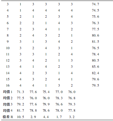 為了確定最佳的實驗條件,采用正交表L16(45),正交實驗因素和水平見表2。