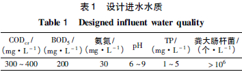 參考相關生活污水水質,對污水處理系統的進水水質的主要指標設計見表1[1]。
