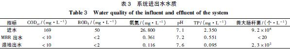 (4) 本系統在接觸氧化池與MBR池之間增設溢流堰,更好地截留接觸氧化池活性污泥,降低MBR 池內的膜污染,延長膜組件的使用壽命;