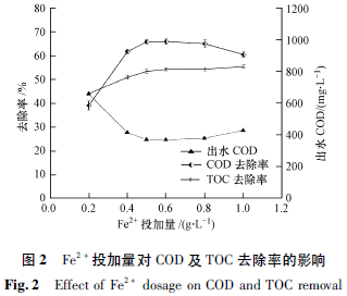 2.1.3 Fe2+投加量的影響