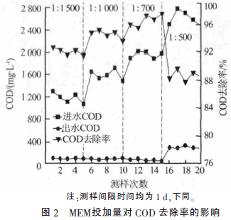 2.2 MEM投加比例對處理效果的影響