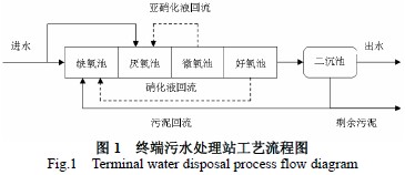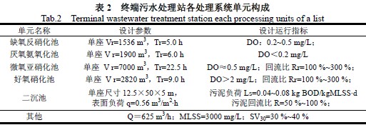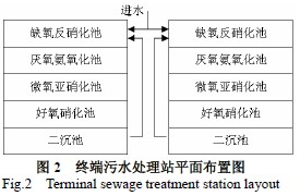 該終端污水處理站采用的A2/O2 工藝是在SHARONANAMMOX工藝的基礎(chǔ)上加以改進(jìn)的一種新型脫氮工藝。此工藝最大的創(chuàng)新之處在于可以按照幾種不同方式運(yùn)行,有很強(qiáng)的適應(yīng)性和發(fā)展性,根據(jù)不同的控制方式,工藝可按全程硝化反硝化、短程硝化反硝化和半亞硝化-厭氧氨氧化等不同的方式運(yùn)行,能夠滿足企業(yè)的不同發(fā)展需要。