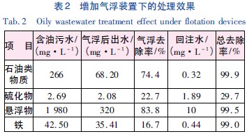 在黑核桃殼過濾器和纖維球過濾器的兩級過濾基礎上,在過濾之前加裝氣浮裝置,可顯著提高對含油污水的處理效果,出水石油類物質(zhì)、硫化物及懸浮物的濃度分別降低了97.4%、17.8%、88.5%,減輕了后期過濾的負荷; 而且回注水水質(zhì)穩(wěn)定,達到《長慶油田污水回注指標控制標準》。