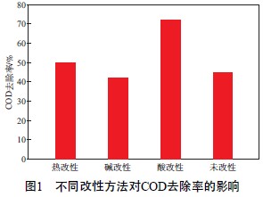 2.1 粉煤灰改性方法對(duì)COD去除率的影響