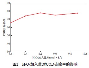 2.3.1 H2O2加入量對(duì)COD去除率的影響