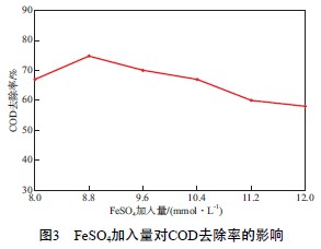 2.3.2 FeSO4加入量對(duì)COD去除率的影響