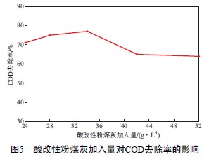 2.3.4酸改性粉煤灰加入量對(duì)COD去除率的影響