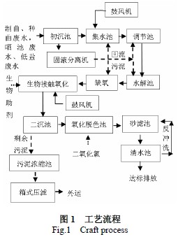 (2)采用厭氧酸化與生物接觸氧化工藝相結(jié)合,與傳統(tǒng)的好氧處理工藝相比具有能耗低、污泥量少、運行穩(wěn)定、耐沖擊等特點;