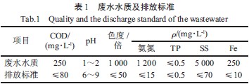 某顏料有限公司是目前中國氧化鐵行業生產量最大、銷售量最高、出口創匯最多的化工企業,年產氧化鐵顏料92 000 噸,產品有氧化鐵紅、鐵黃、鐵黑、鐵橙、鐵棕、鐵綠,以及超細、耐高溫等深加工系列產品50 多個。設計處理量為3000 m3/d,所排放的廢水主要是生產工藝廢水和地面沖洗廢水,經處理后直接排放,要求達到污水綜合排放標準(GB8978-1996)一級排放標準,設計進出水質及排放標準見表1。