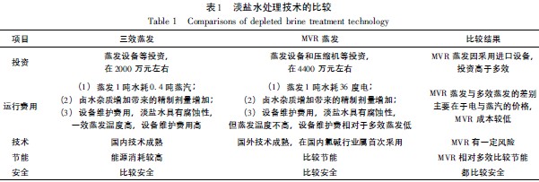 通過比較得出結論,采用MVR技術濃縮淡鹽水的成本低于三效蒸發濃縮技術。