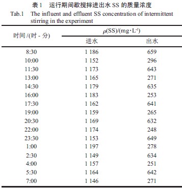 在反應器間歇進水期,反應步驟為進水- 攪拌-沉淀- 出水,包括了靜置沉淀的時間。測定出水的SS 均值為343mg/L。