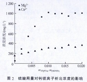 2.2 硫酸用量對鈣鎂離子析出濃度的影響