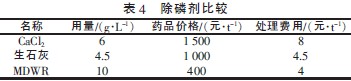 (2)MDWR 除磷費用比同類除磷劑低,不僅可解決廢棄物的處置難題,還可給企業創造經濟效益,具有良好的發展前景。