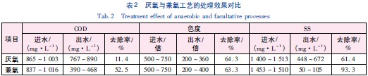 采用兼氧接觸氧化工藝處理含高濃度SS 的紡織印染廢水,HRT 以10 h 為宜,其對COD、色度、SS的去除率分別為54%、64%、93% 左右,出水pH 值穩定在7~8.5。這說明采用低強度曝氣的兼氧接觸氧化工藝對處理該類廢水具有很好的適用性,并有利于后續生物處理。