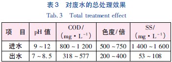 在HRT 為10 h 及未對原水pH 值進行調節的條件下連續運行20 d,進水pH 值為9.02~11.20,出水pH 值為7.88~8.23,大大改善了后續處理的pH 值條件,有利于后續的生物處理。且在進水pH值大于10 時對COD 的去除率仍能達到51.6%。這說明兼氧接觸氧化工藝具有極強的抗高pH 值沖擊性能。