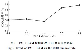 (3)混凝Ⅱ處理中,PAC的最佳投加量為3500mg/L,PAM 的最佳投加量為35mg/L,COD去除率達85.40%。
