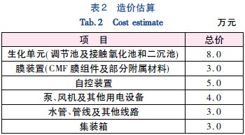 運行過程中噸水耗電為0.6 kW爛h,按照電價為0.5元/(kW爛h) 計算,電費需要15元/d.藥劑費為0.02元/m3,1元/d.總費用為76元/d,中水價格按照1.70元/m3 計算,自來水價格按照5.0元/m3計,使用再生水節約費用為3.3元/m3,節省用水成本為5.4 萬元/a.具體參見http://www.bnynw.com更多相關技術文檔。