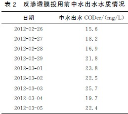 2.1 反滲透膜對(duì)中水水質(zhì)CODcr效果分析
