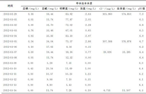 4.1 反滲透膜對(duì)中水中鈣鎂離子硬度、濁度、Cl-、鹽含量、化學(xué)需氧量等有較好的去除效果。
