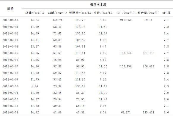 表4 循環(huán)水分析檢測數(shù)據(jù)