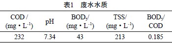 廢水取自陜西某紙廠二沉池出水。該紙廠主要以廢紙和麥草半化學(xué)漿生產(chǎn)瓦楞紙,經(jīng)二級生化處理后,廢水仍保留一部分無機鹽及低相對分子質(zhì)量的有機物等溶解性固體,廢水水質(zhì)見表1。