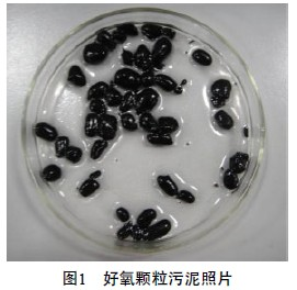 取按文獻已培養的好氧顆粒污泥,挑選粒徑3~5 mm、外形為球形或橢球形的好氧顆粒污泥作為接種污泥。好氧顆粒污泥照片見圖1。