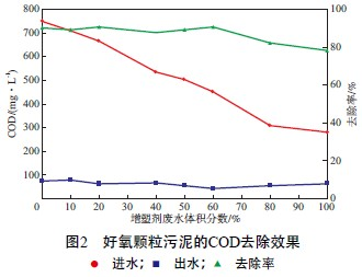 將好氧顆粒污泥置于反應器中,加入人工配水運行7 d后,改變增塑劑廢水在進水中的比例。進水濃度每改變一次,穩定運行7 d后,取樣檢測。