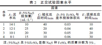 為得到因素的主次關系和最優組合條件,本研究采用綜合平衡法對正交試驗結果進行直觀分析(計算過程及結果未予詳細列出,計算方法見參考文獻。綜合考慮計算得出的極差和指標的重要程度,最終選擇因素的主次順序為:泥水比>硫化反應時間>硫化鈉投加量>混凝反應時間>FeSO4投加量。綜合考慮指標的重要性和經濟性等因素,得到最優組合條件為A1B3C2D3E4,即泥水比為14∶1,5%硫化鈉投加量為20 mL,硫化反應時間為20 min,5%FeSO4與廢水投加體積比為0.05,混凝反應時間為30 min。具體參見http://www.bnynw.com更多相關技術文檔。