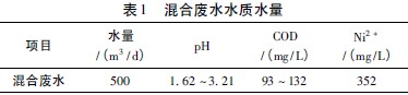 在實際運行中可根據加藥計量泵和進水泵開度大小控制投藥量。調試成功后,出水鎳含量的去除率約為78. 41%。