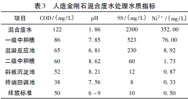 采用采用化學中和+ 化學沉淀+ 砂濾池的工藝對人造金剛石含鎳酸性廢水進行處理是成功的,對鎳的去除率達到99. 9%以上,經過近一年的運行管理考察,整個系統運行平穩,各項指標基本達到設計要求,管理維護簡單,且出水可以達到回用水要求。總之該工程在技術上可行,具有良好的社會效益和環境效益,對人造金剛石行業的可持續發展具有重要的意義。