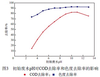 2.3 初始廢水pH對COD去除率和色度去除率的影響
