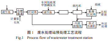 2 臺電解絮凝反應(yīng)器的外形尺寸分別為φ2.3 m×2.5 m,有效容積4.2 m3,極板面積20 m2,板間距15mm,陽極與陰極材料均采用φ32 鐵棒,電極間距為50 mm,單臺設(shè)計流量為10 t/h,電解反應(yīng)時間0.5 h;使用高頻脈沖直流電源,逆變脈沖頻率為20 kHz。