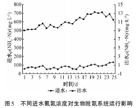 2. 6 不同吹脫出水氨氮濃度對A/O 脫氮系統(tǒng)運行效果影響