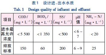 根據現場考察,該企業米粉車間廢水產生量約120 m3 /d,根據當地環保局和有關部門關于工礦企業廢水的排放要求,處理出水水質需達到《污水綜合排放標準》(GB 8978—1996) 的二級標準。