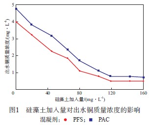2.1 硅藻土加入量對出水銅質量濃度的影響