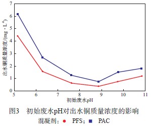 2.3 初始廢水pH對出水銅質量濃度的影響