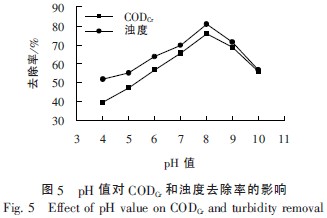 2.3 pH 值對混凝沉淀處理效果的影響