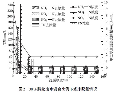 2.1.1 30%腈綸廢水混合比例時(shí)濾床脫氮情況